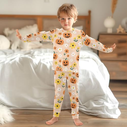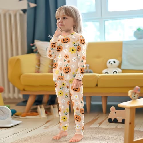 Pajama Sets Long Sleeve Halloween Pumpkins Flowers on Peach Soft Comfy Sleepwear 2 Piece PJS 3-8T 2