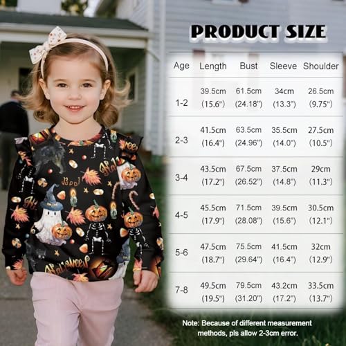 Halloween Toddler Crewneck Sweatshirt Girls Graphic Sweatshirts Pullover Tops with Ruffle Sleeves Kids Fall Clothes 7