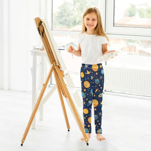 Cartoon Space Planet Girls Leggings Ultra Soft Compression Yoga Gym Pants for Kids 4-10T 7