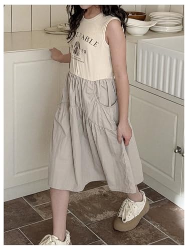 HOT ! Floerns Girl's Letter Print Sleeveless Patchwork Tiered A Line Midi Dresses