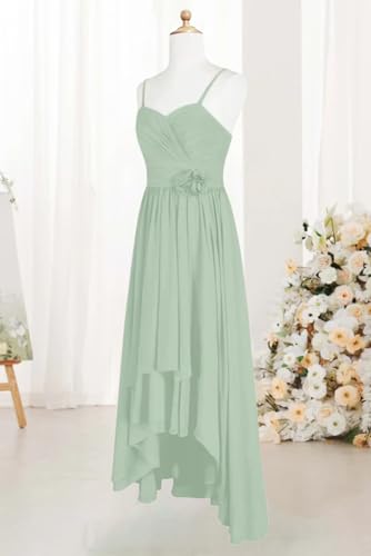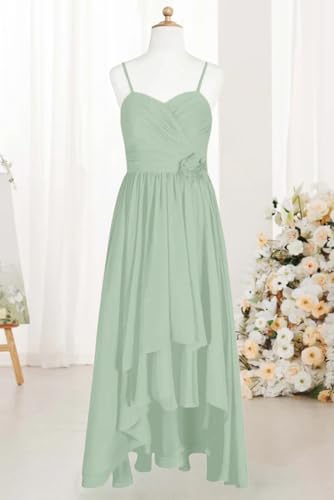 Asymmetrical Junior Bridesmaid Dresses A-Line Ruched Chiffon Flower Girl Dress Spaghetti Straps Formal Party Gown 6