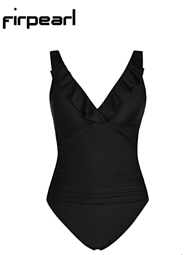 HOT ! Firpearl Women's Ruffle One Piece Bathing Suits V Neck Vintage Tummy Control Swimsuit Swimwear