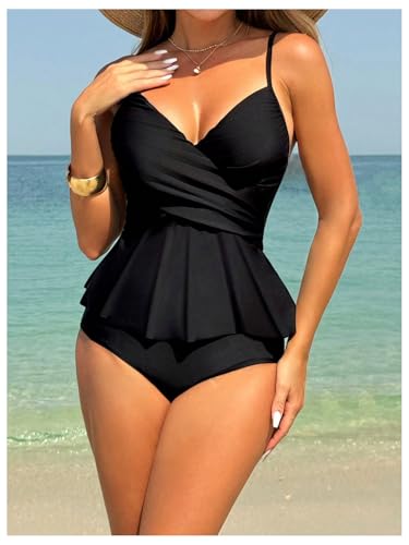 SHENHE Women's Ruffled Tankinni Swimsuit Tummy Control High Waisted Peplum Bathing Suits 1