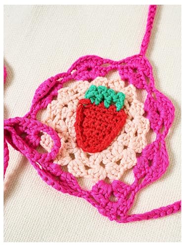 MakeMeChic Women's Crochet Knit Cover Up Set Strawberry Halter Bikini Top and Thong Swimsuit Set 6