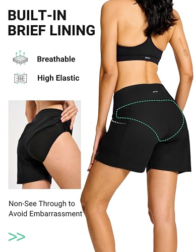 BVVU Women's 5" High Waisted Swim Board Shorts with Pockets Liner Tummy Control UPF50+ Quick Dry Beach Swimsuit Bottoms 6