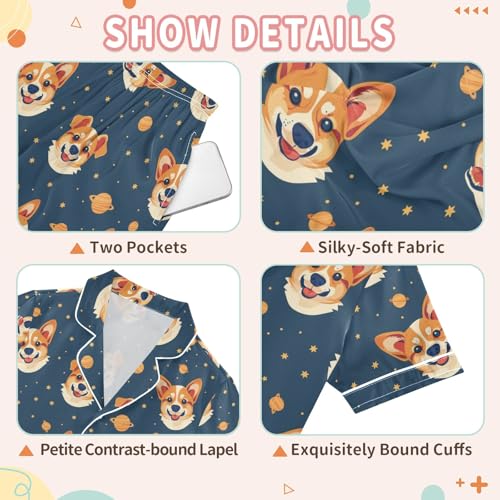 More information about Space Corgi Summer Satin Pajama Set, Cute Button-Down Sleepwear Pj Set for Sleep Wears