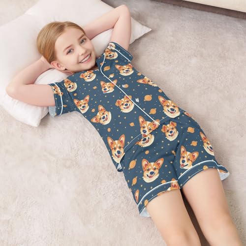HOT ! Space Corgi Summer Satin Pajama Set, Cute Button-Down Sleepwear Pj Set for Sleep Wears