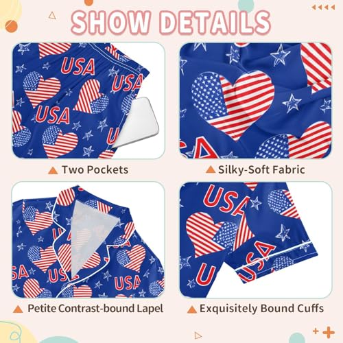 More information about Heart Flag Pattern Pajamas Sets Short Sleeve Silk Stain Pjs Button Down Sleepwear for 5-14Y