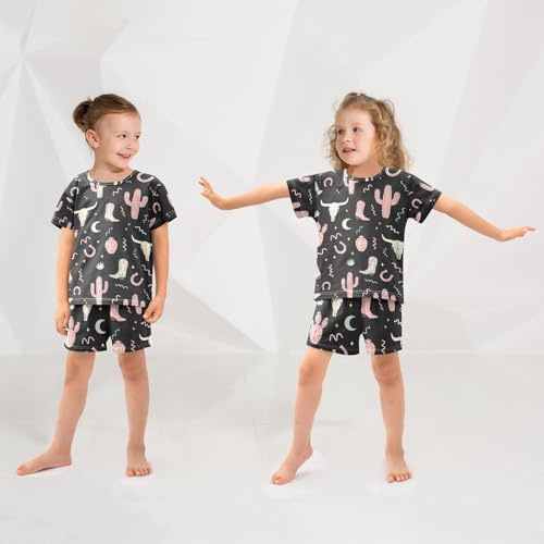 Pajama Short Sets Western Themed Seamless Pattern Design_1 Soft Cotton Summer Sleepwear 2 Piece PJS Size 5-14T 6