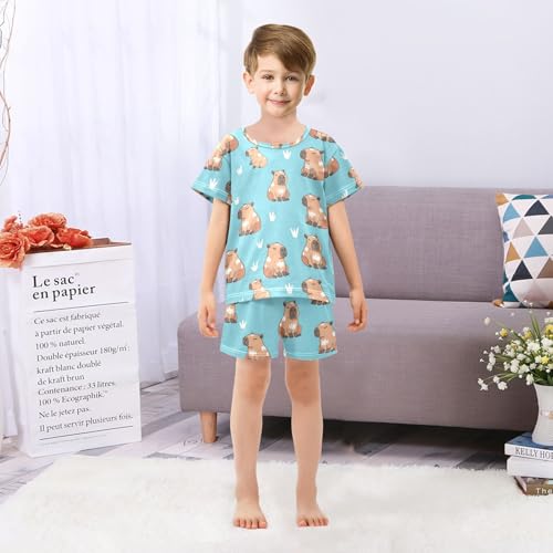Pajama Short Sets Cute Brown Animals Pattern Soft Cotton Summer Sleepwear 2 Piece PJS Size 5-14T 3