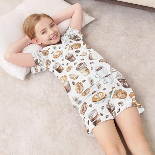 ALAZA Ice Cream Coffee Bean Pajamas Satin Pajama Set Short Sleeve Button Down Sleepwear 6