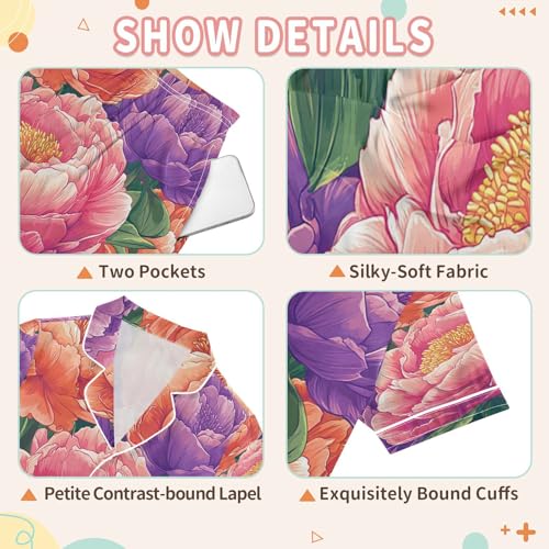 More information about Satin Pajama Sets Short Sleeve Floral Pattern with Colors Button Down Silky Nightwear 2 Piece PJS 5-14Y