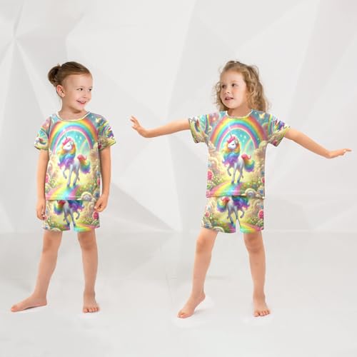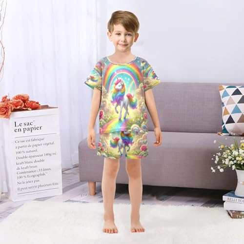 Unicorns Rainbow Pajama Set Short Sleeve Summer Pajamas Sleepwear Nightwear Set Cotton 5Y 5