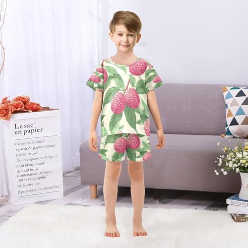 Pajama Sets Short Sleeve Lychee Fruit Green Leaves Soft Cotton Summer Sleepwear 2 Piece PJS Size 5-14T 6