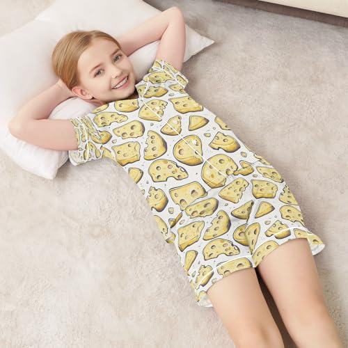 Satin Pajama Sets Short Sleeve Cartoon Cheese Slices Pattern Button Down Silky Nightwear 2 Piece PJS 5-14Y 6