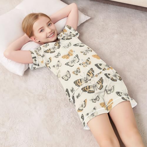 ALAZA Yellow Butterfly Retro Satin Pajamas Set Short Sleeve Button Down Sleepwear Summer Pjs 2 Piece 6