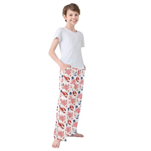 ALAZA Red Lobster Anchor Seashell Coral Reef Pajama Lounge Pants Long Sleep Pajama Bottoms with Pockets 1