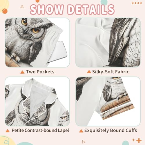 ALAZA Funny Bird Owl Book Satin Pajamas Set Short Sleeve Button Down Sleepwear Summer Pjs 2 Piece 4