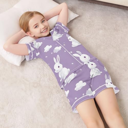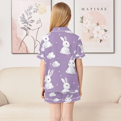 senya Cloud with Rabbit Purple Satin Summer Pajama Sets Silk Short Sleeve Button Down Sleepwear 5