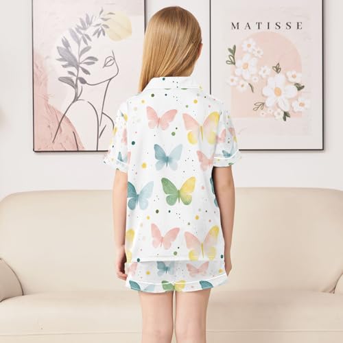 senya Watercolor Butterflies Colored Satin Summer Pajama Sets Silk Short Sleeve Button Down Sleepwear 5