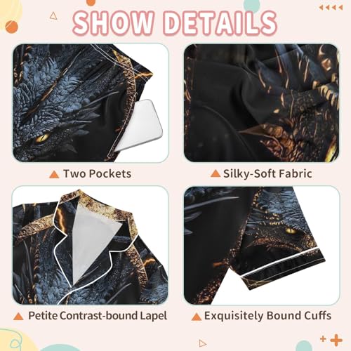 ALAZA Dragon Water Satin Pajamas Set Short Sleeve Button Down Sleepwear Summer Pjs 2 Piece 7