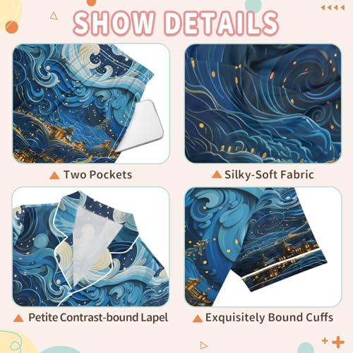 More information about ALAZA Van Gogh Cityscape Satin Pajamas Set Short Sleeve Button Down Sleepwear Summer Pjs 2 Piece
