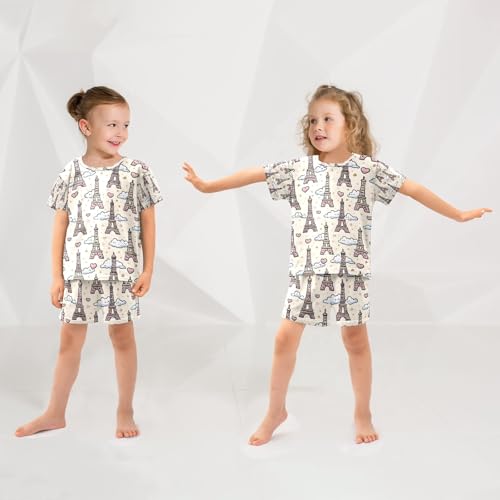 senya Cartoon Eifel Tower A Summer Pajamas Set Short Cotton Sleepwear 2 Piece 1