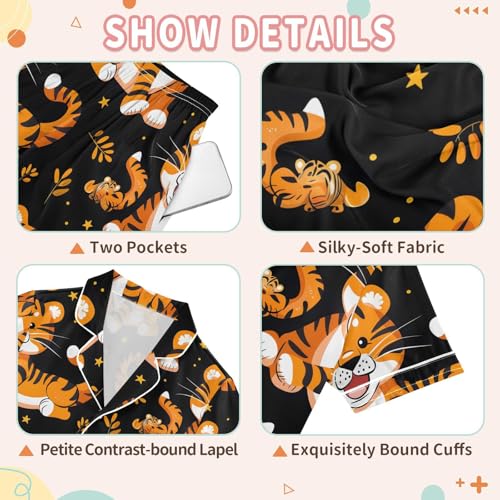 ALAZA Cartoon Tiger Animal Black Satin Pajamas Set Short Sleeve Button Down Sleepwear Summer Pjs 2 Piece 6