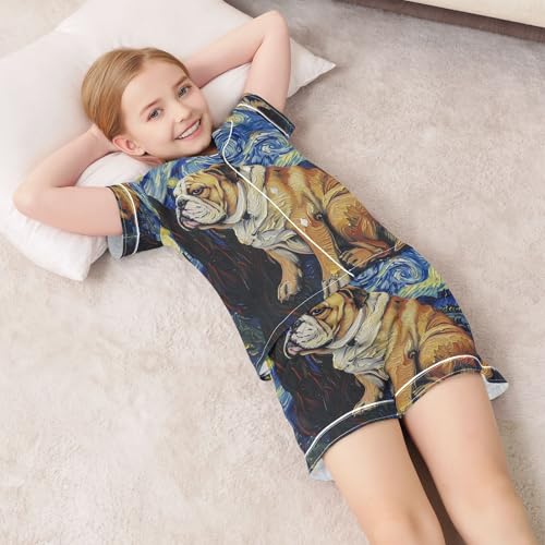 ALAZA French Bulldog Van Gogh Sky Satin Pajamas Set Short Sleeve Button Down Sleepwear Summer Pjs 2 Piece 3