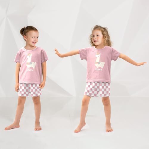 Checkerboard Plaid Llama Colorful Rose Pajama Set Short Sleeve Pajamas Shorts Sets Cotton PJS 2 Piece Clothes Set 5Y 4