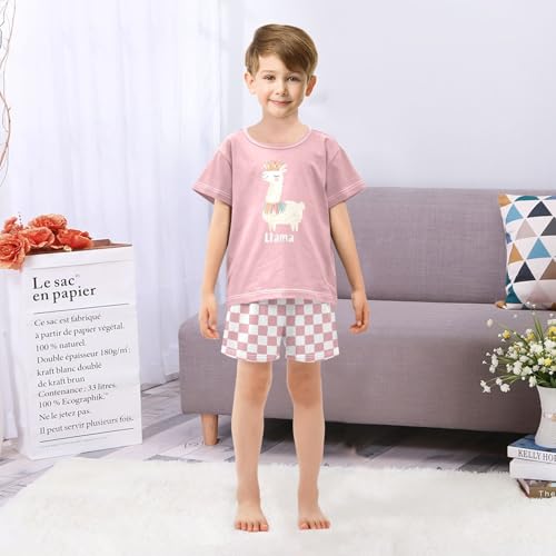 Checkerboard Plaid Llama Colorful Rose Pajama Set Short Sleeve Pajamas Shorts Sets Cotton PJS 2 Piece Clothes Set 5Y 2