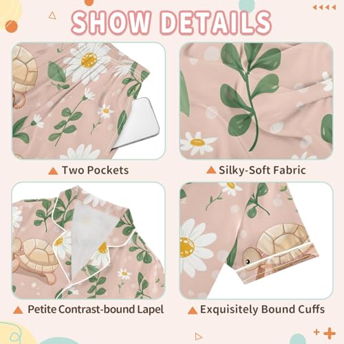 ALAZA Cute Turtle Flower Pajamas Satin Pajama Set Short Sleeve Button Down Sleepwear 7