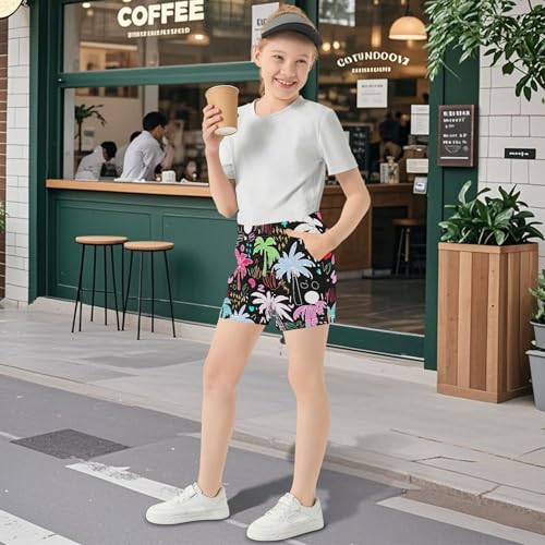 Girls Lounge Shorts Colorful Palm Tree Pattern Summer Athletic Active Pajama Sleep Cute Comfy Youth Shorts, X-Small 5