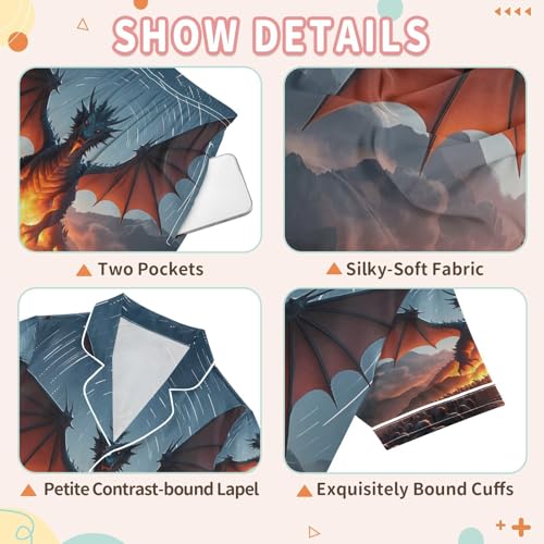 More information about ALAZA Dragon Fire Sunset Satin Pajamas Set Short Sleeve Button Down Sleepwear Summer Pjs 2 Piece