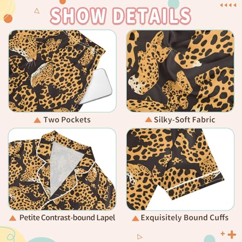ALAZA Leopard Skin Fashion Satin Pajamas Set Short Sleeve Button Down Sleepwear Summer Pjs 2 Piece 7