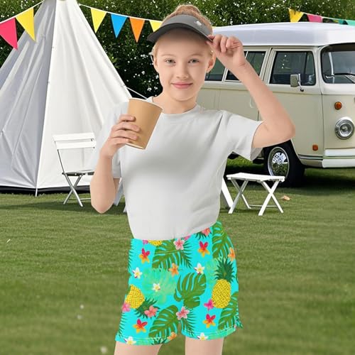 Girls Athletic Tropical Pineapples Green Leaves Cute Youth Summer Casual Pajama Shorts Comfy Soft Activewear, X-Small 1