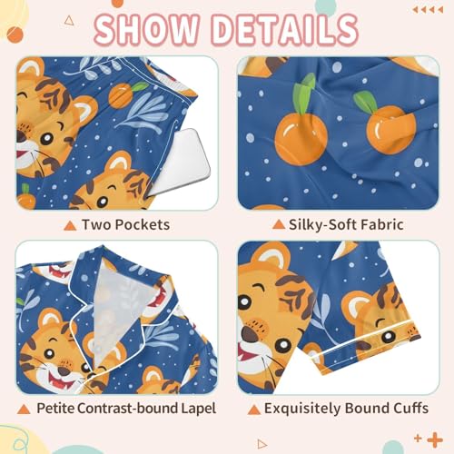 ALAZA Cute Tiger Persimmon Pajamas Satin Pajama Set Short Sleeve Button Down Sleepwear 6