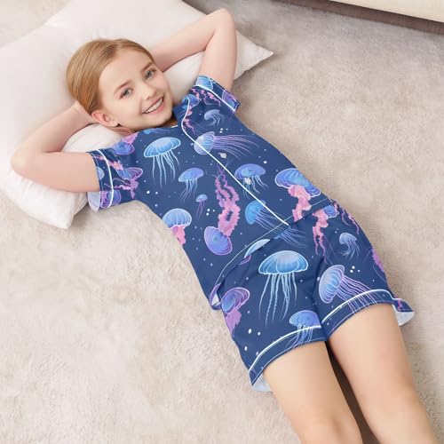 ALAZA Beautiful Color Jellyfish Pajamas Satin Pajama Set Short Sleeve Button Down Sleepwear 5