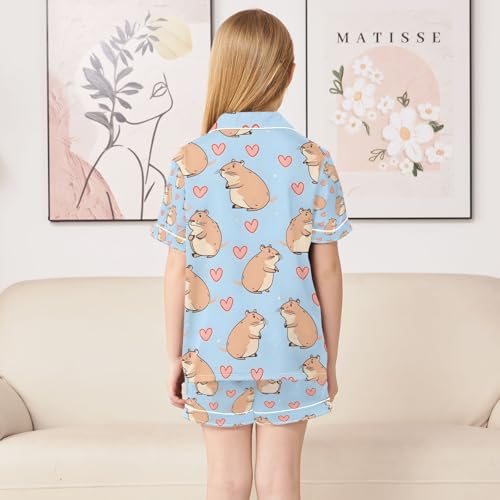 senya Mouse and Love Satin Summer Pajama Sets Silk Short Sleeve Button Down Sleepwear 5