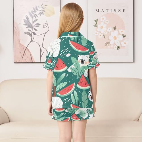 senya Polar Bear Eat Watermelon Satin Summer Pajama Sets Silk Short Sleeve Button Down Sleepwear 1