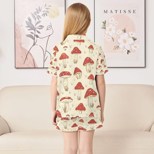 senya Red Mushroom and Grass Z Satin Summer Pajama Sets Silk Short Sleeve Button Down Sleepwear 5