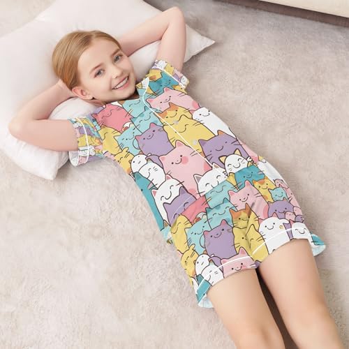senya Colored Of Cats Satin Summer Pajama Sets Silk Short Sleeve Button Down Sleepwear 5
