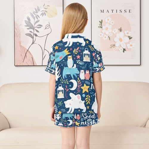senya Bears Owls Moon Satin Summer Pajama Sets Silk Short Sleeve Button Down Sleepwear 1