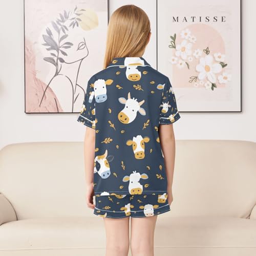 senya Cow Head Dark Satin Summer Pajama Sets Silk Short Sleeve Button Down Sleepwear 1