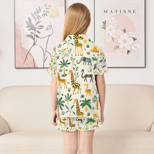 senya Giraffes Tree Satin Summer Pajama Sets Silk Short Sleeve Button Down Sleepwear 6