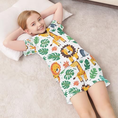 senya Cute Jungle Animals A Satin Summer Pajama Sets Silk Short Sleeve Button Down Sleepwear 6