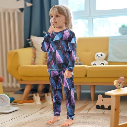 Pajama Sets Long Sleeve Pruple Blue Abstract Structure Soft Comfy Sleepwear 2 Piece PJS 3-8T 3