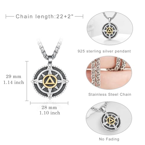 TYSO AA Sobriety Necklace for Men 925 Sterling Silver Compass Necklace AA Coins Medallions Pendant Alcoholics Anonymous Gifts Jewelry for Men 2