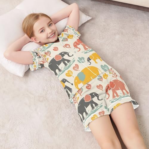 senya Elephants Family Playing Satin Summer Pajama Sets Silk Short Sleeve Button Down Sleepwear 6