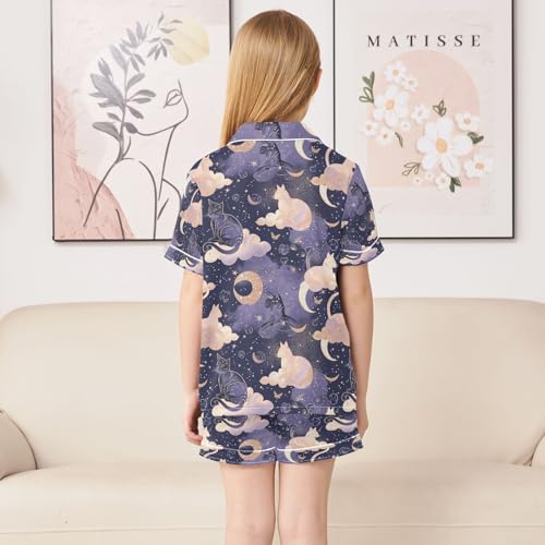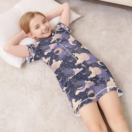 senya Magic Clound Cat Satin Summer Pajama Sets Silk Short Sleeve Button Down Sleepwear 3
